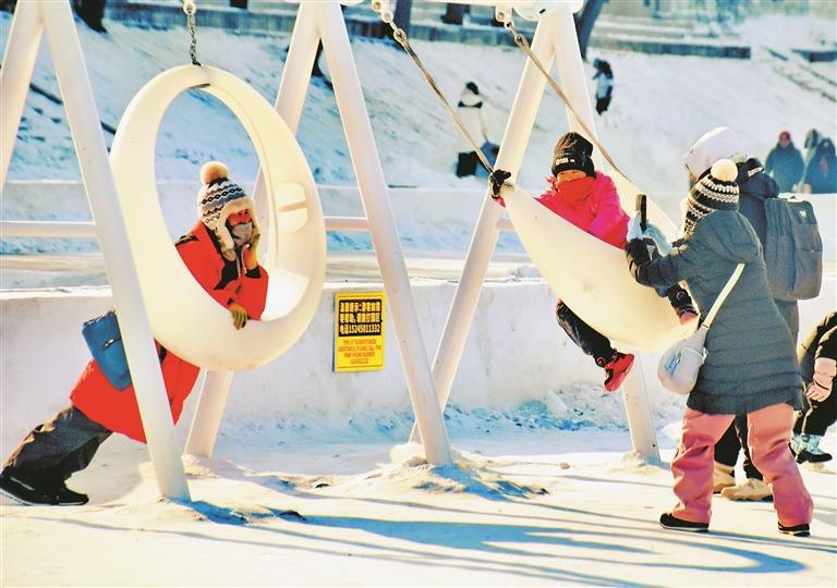 日前,哈尔滨市松花江冰雪嘉年华园区内,许多市民和外地游客在这里玩冰乐雪,尽享冬季游乐项目的快乐与激情。这里既有冰上漂移、雪上摩托、卡丁车、气垫船等惊险刺激的收费项目,也有跷跷板、秋千、儿童雪滑梯、公益冰场等免费项目,让人们尽享冬趣。