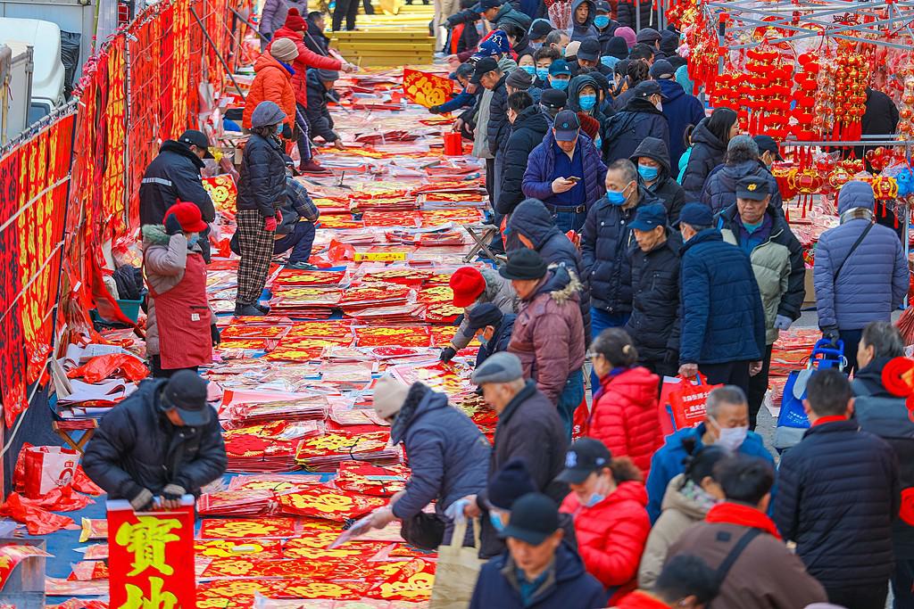 2026年1月30日,人们在李村大集选购新年饰品。图源:视觉中国