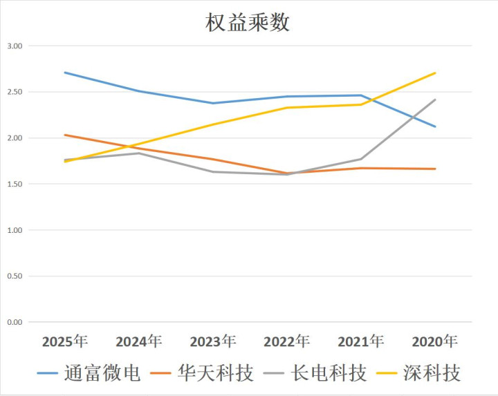 最新三季度财务杠杆:通富微电>华天科技>长电科技>深科技